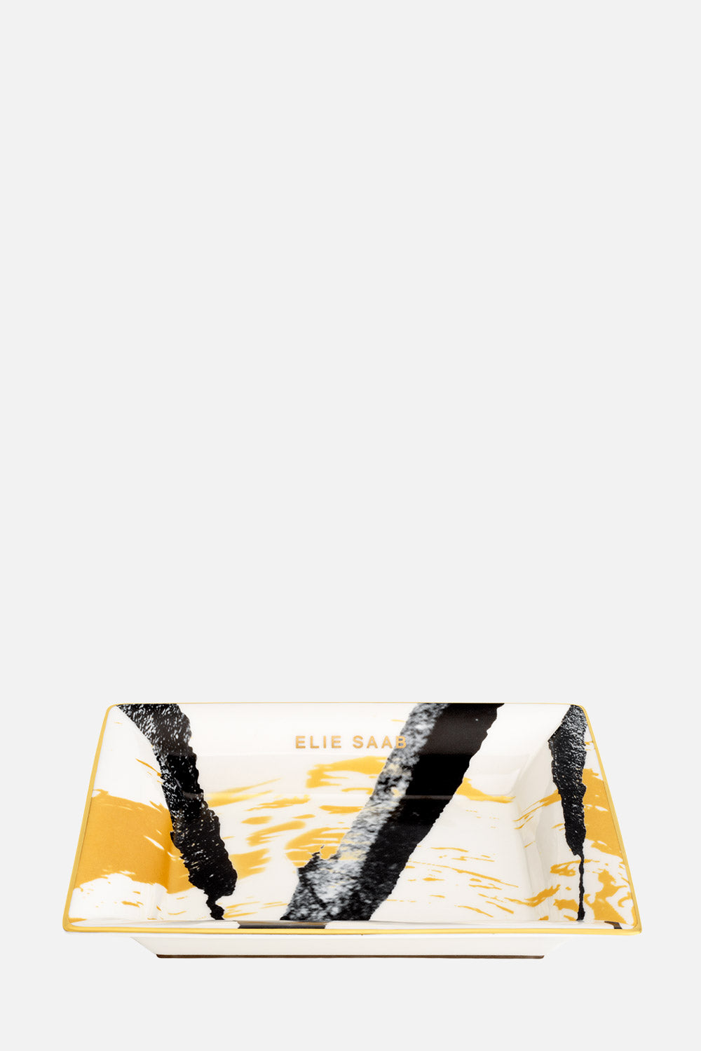 Add a touch of luxury to your decor with the Elie Saab Golden Sumi-e Large Vide-Poche. Crafted from premium porcelain with gold brush strokes inspired by Japanese Sumi-e art, it features a black finish and Italian leather base—blending timeless artistry with modern elegance.