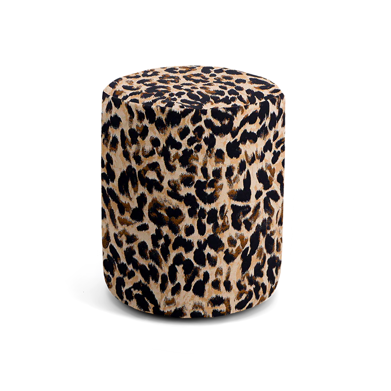 A chic, round footstool in leopard jacquard cotton — perfect as a stylish accent or occasional seat. Fully upholstered, removable cover, and ready for home delivery.