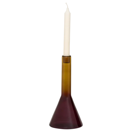 Illuminate your space with the Frisk Recycled Glass Candle Holder in rich Prune. This elegant piece combines deep plum and olive tones in a captivating duo-color design, adding moody charm and sophistication to any room.